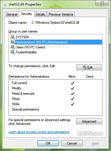 Note: If Everyone isn’t listed in the Group or User Name checkbox, click Add and type in Everyone > OK.