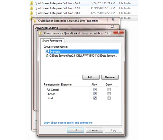 Setting Up the Folder and Windows Access Permissions for QuickBooks Files